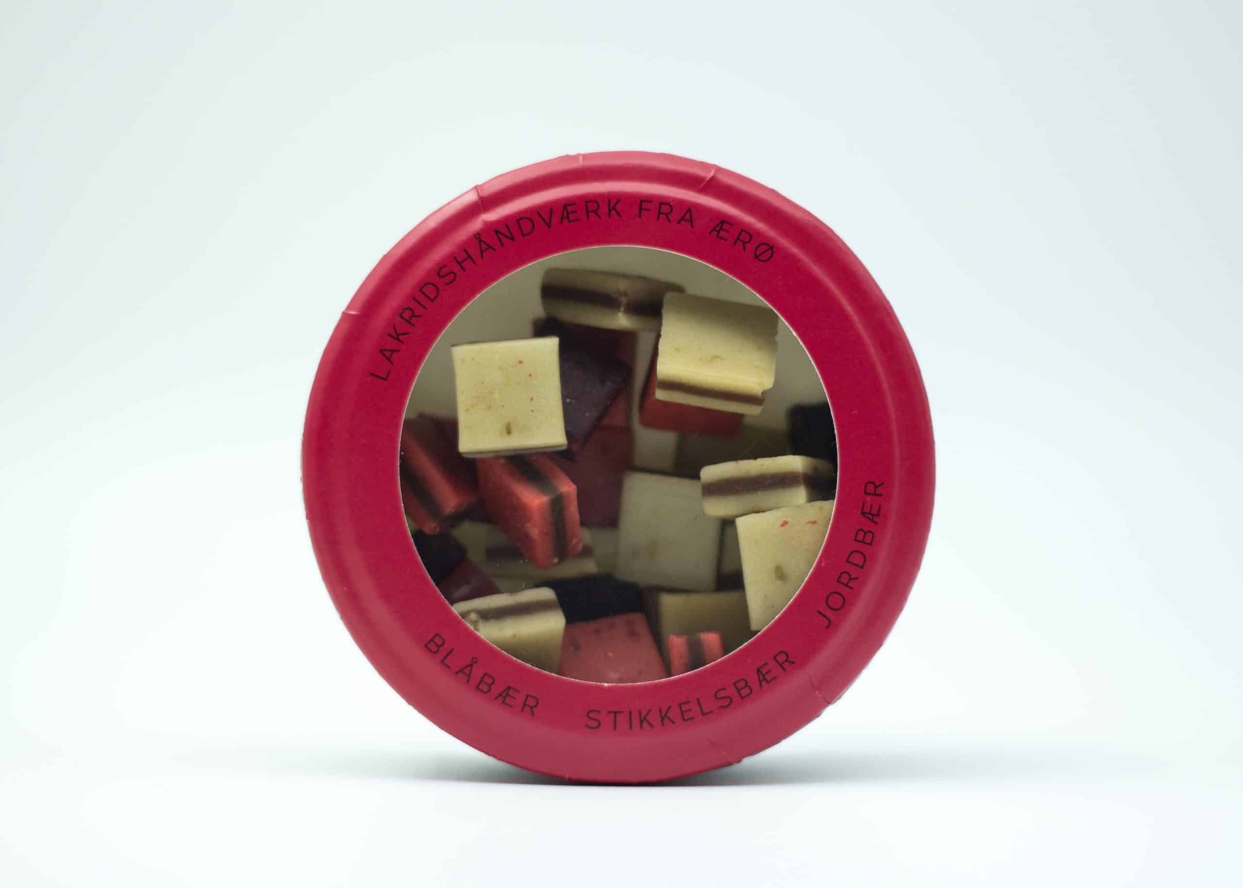 Lakridskonfekt med blåbær, stikkelsbær og jordbær